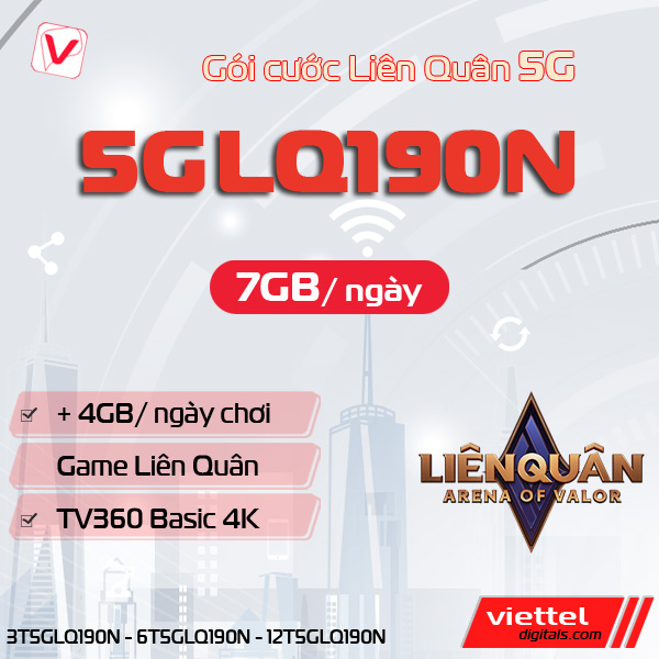 Gói data 5GLQ190N là một trong những gói cước 5G tiên tiến nhất của Viettel, được thiết kế để đáp ứng nhu cầu sử dụng data ngày càng cao của người dùng trong thời đại số. Với gói cước này, bạn sẽ được trải nghiệm tốc độ mạng siêu nhanh và dung lượng data dồi dào. Đặc biệt, gói cước được Viettel thiết kế dành riêng cho nhưng bạn đam mê game Liên Quân Mobile.